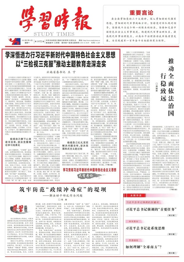 《學習時報》頭版頭條刊發