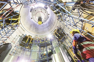 建設中的石島灣高溫氣冷堆核電站(局部)。