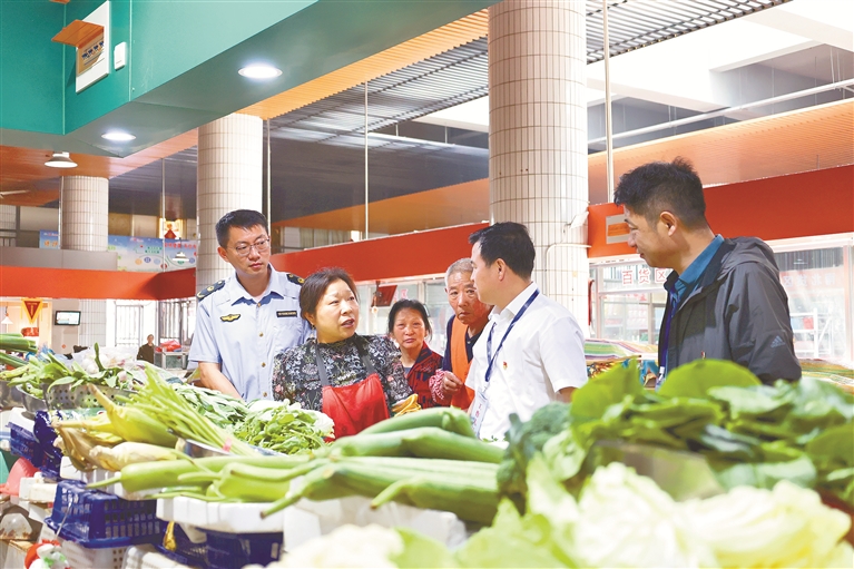 江蘇省高郵市紀(jì)委監(jiān)委聚焦群眾最關(guān)心最直接最現(xiàn)實(shí)的利益問題,將刁難群眾、吃拿卡要等問題作為整治重點(diǎn),聯(lián)合市場(chǎng)監(jiān)督管理等部門組成督查小組,通過(guò)“四不兩直”方式開展監(jiān)督檢查。圖為近日,督查小組在市區(qū)內(nèi)菜場(chǎng)走訪群眾了解情況。譚倩 攝