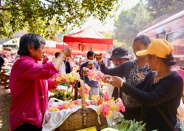 小寒至,年味漸濃。墨江麻脆因形狀豐富多彩、顏色鮮艷、口感香酥脆甜,是當地群眾不可或缺的年味。(胡斌潔 攝)