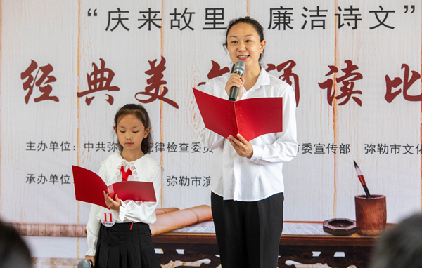 彌勒市紀委監(jiān)委聯(lián)合市委宣傳部、市婦聯(lián)等部門以清廉家庭建設(shè)為抓手,引導(dǎo)廣大家庭以“小家”好家風(fēng),促進“大家”好風(fēng)氣。圖為該市組織親子家庭參加廉潔經(jīng)典詩文誦讀比賽。(彌紀宣 攝)