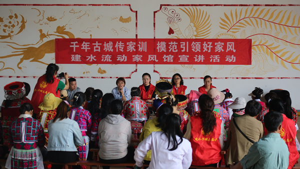 建水縣紀委監(jiān)委聯(lián)合縣婦聯(lián)等部門開展“流動家風(fēng)館巡回宣講”活動,讓廉潔之花在建水處處綻放。圖為該縣家風(fēng)宣講團成員到利民鄉(xiāng)開展宣講。(熊志寅 攝)