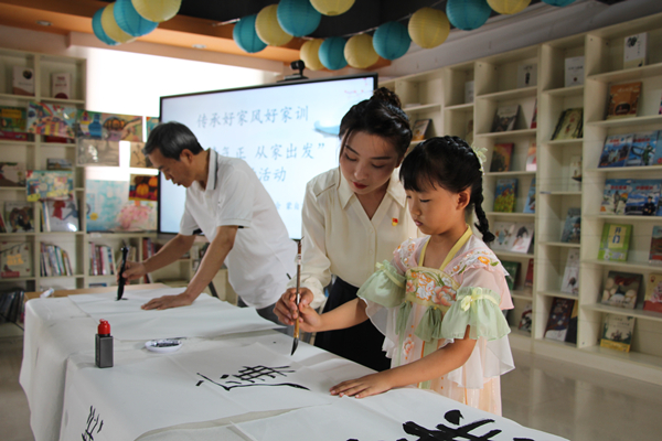 蒙自市紀委監(jiān)委將廉潔家風(fēng)與傳統(tǒng)文化相結(jié)合,組織紀檢監(jiān)察干部家庭開展“風(fēng)清氣正 從家出發(fā)”“廉內(nèi)助”活動,以良好家風(fēng)“廉”接優(yōu)良作風(fēng)。圖為紀檢干部手把手教孩子書“廉”。(徐雪 攝)