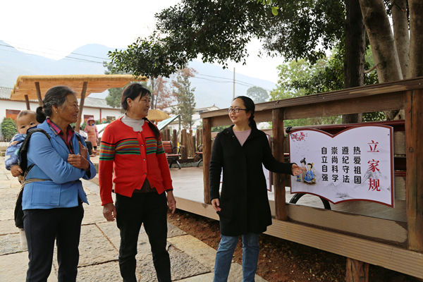 石屏縣挖掘梳理異龍湖沿湖村莊家風(fēng)家訓(xùn),打造“家門口”的家風(fēng)傳承陣地,讓家風(fēng)文化潤物無聲。(何佳 攝)
