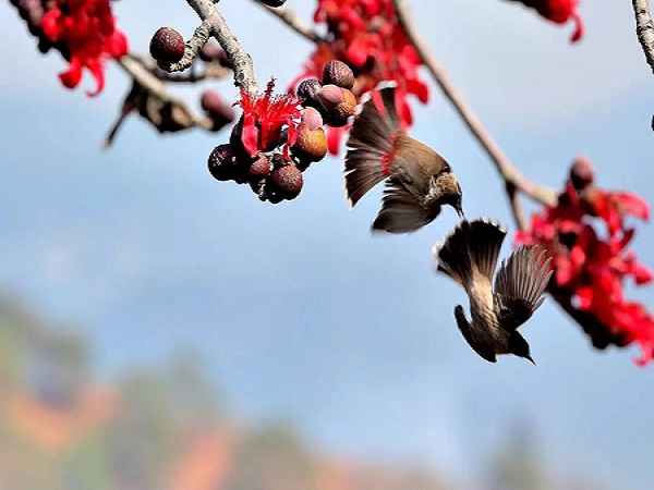 “花開飄焰火,瓣落頌英雄。”在保山市昌寧縣雞飛鎮,紅艷似火的木棉花伴著鳥兒的歌聲在河邊怒然開放。(吳再忠 攝)