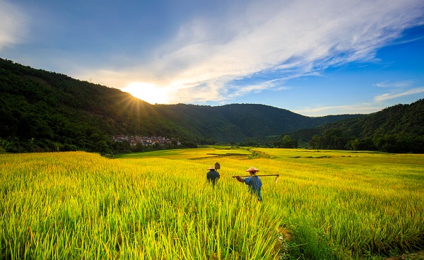 玉溪市新平縣的稻谷已陸續成熟,進入收獲階段,金黃的稻田在陽光的照耀下熠熠生輝,陣陣稻香向人們傳遞著豐收的喜悅。(楊會 攝)