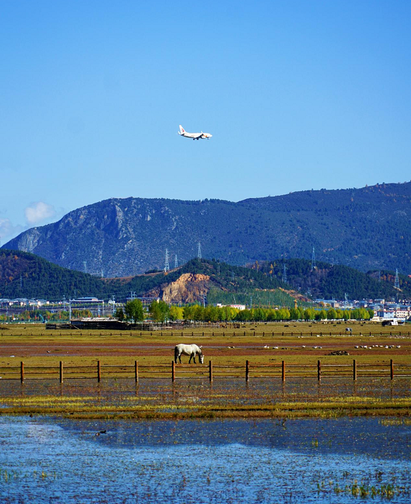 湛藍(lán)的天空、皚皚的白雪、明鏡似的湖水以及橙黃的草地上悠閑的馬兒……小雪至,迪慶高原到了飽和度最高的季節(jié)。(斯娜卓瑪 攝)