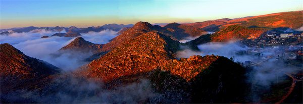 小雪時(shí)節(jié),瀘西東山梁子清晨的涼意與冬日暖陽形成的溫差帶來了層層薄霧,若隱若現(xiàn)的云霧在山間流淌,變幻莫測,美不勝收。(黃光明 攝)