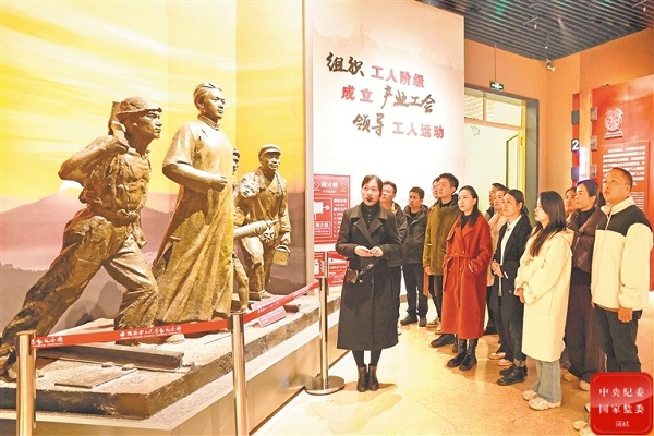 江西省萍鄉市安源區紀委監委充分挖掘當地優秀廉潔文化豐富內容,采取參觀革命遺址、聆聽革命故事等多種形式,推動形成廉榮貪恥的社會氛圍,使紀檢監察干部進一步強化思想淬煉,堅定政治信仰,努力做自我革命的表率、遵規守紀的標桿。圖為近日,該區紀檢監察干部在安源路礦工人運動紀念館參觀。 鄧建萍 攝