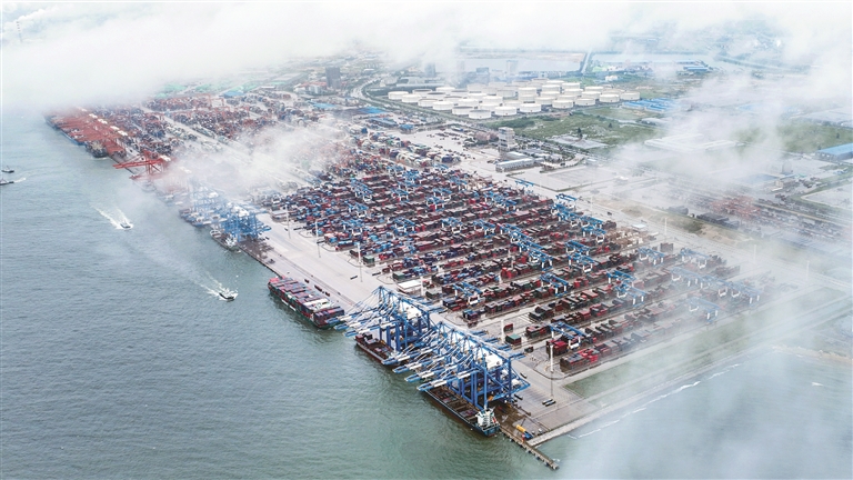 西部陸海新通道位于我國西部地區(qū)腹地,北接絲綢之路經(jīng)濟帶,南連21世紀(jì)海上絲綢之路,協(xié)同銜接長江經(jīng)濟帶,在區(qū)域協(xié)調(diào)發(fā)展格局中具有重要戰(zhàn)略地位。從最初的“一條線”延展成“一張網(wǎng)”,《西部陸海新通道總體規(guī)劃》頒布實施5年來,西部陸海新通道鐵海聯(lián)運班列累計運輸貨物超310萬標(biāo)箱。圖為廣西欽州港碼頭。 新華社記者 張愛林 攝
