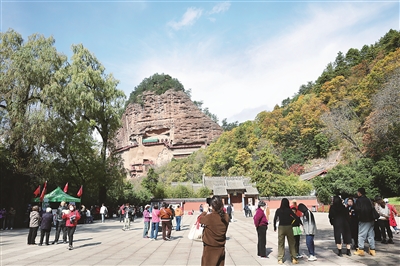 近年來,麥積山石窟藝術(shù)研究所等文物保護(hù)部門持續(xù)加大對麥積山石窟的搶救性保護(hù)和預(yù)防性保護(hù)工作力度,讓千年文化瑰寶持續(xù)煥發(fā)光彩。圖為日前,游客在麥積山石窟參觀,感受中華優(yōu)秀傳統(tǒng)文化的魅力。新華社記者 陳斌 攝