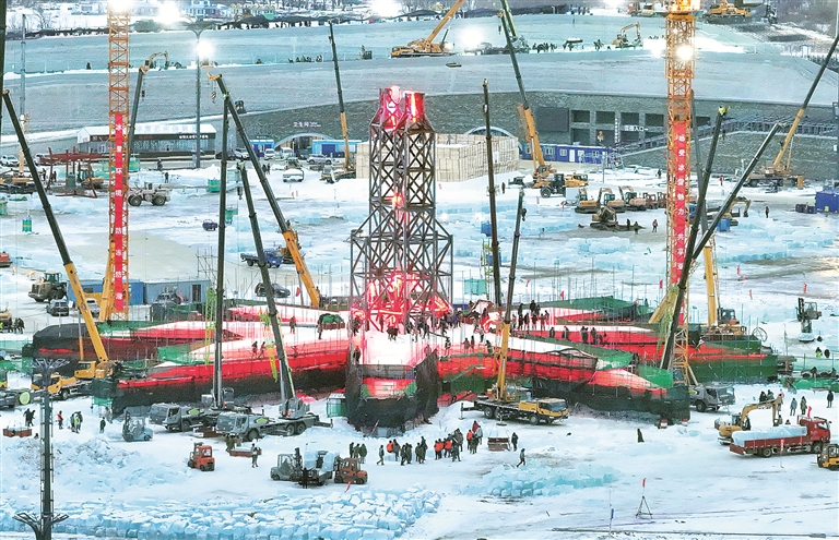 隨著哈爾濱2025年第九屆亞冬會的臨近,東北地區(qū)冰雪季日益火爆。為滿足游客多樣化需求,推動冰雪經(jīng)濟新增長,哈爾濱不斷升級冰雪旅游產(chǎn)品,打造消費新場景。圖為近日,第二十六屆哈爾濱冰雪大世界造雪工作已啟動,園區(qū)雪雕建設同時進行,萬名工人全力推進冰建雪景的建設。 圖片來源:視覺中國