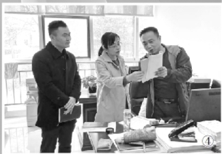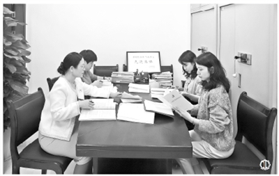 圖④:陳菊(中)在某單位查看相關資料,檢查公車使用情況。孫煒 攝