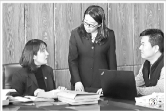 圖③:任瑞(左)在與同事分析相關案情。 苗潤川 攝