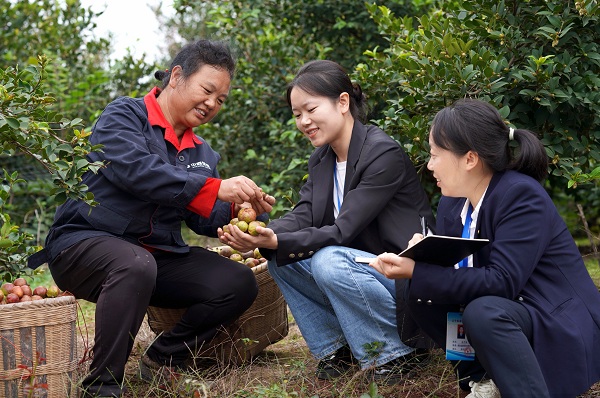 圖為赤水市紀委監委干部在某油茶基地了解惠農補貼發放情況。茍煉煒 攝