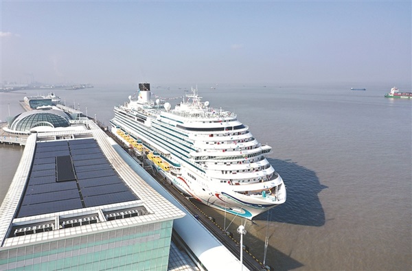 1月1日,國產首艘大型郵輪“愛達·魔都號”在上海吳淞口國際郵輪港正式開啟商業首航。新華社記者 丁汀 攝