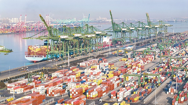 作為我國北方重要的對外貿易口岸和國際樞紐港,天津港依托獨特區位優勢,不斷提升港口功能,高水平打造京津冀海上門戶。數據顯示,天津港2023年完成集裝箱吞吐量2217萬標準箱,同比增長5.5%,創歷史新高。圖為天津港太平洋國際集裝箱碼頭。新華社記者 趙子碩 攝