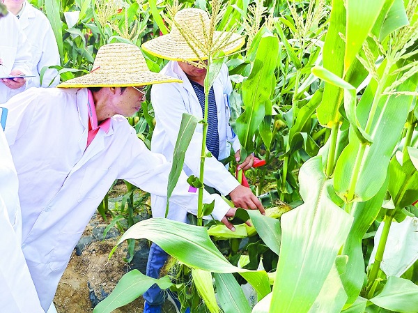 海墾集團服務保障國家南繁戰(zhàn)略,持續(xù)推動南繁產(chǎn)業(yè)“育繁推服”一體化發(fā)展,連續(xù)四年承擔中國種子(南繁硅谷)大會地展工作。圖為近日,農業(yè)專家在國家現(xiàn)代農業(yè)(種業(yè))產(chǎn)業(yè)園進行田間觀摩,評選玉米品種。李靈娜 攝