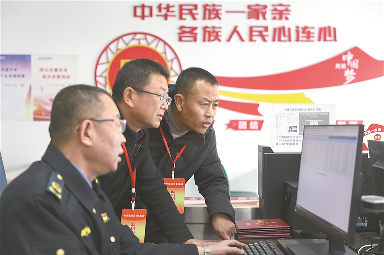 云南省陸良縣紀委監委組織力量深入一線,嚴肅查處黨員干部違規從事有償中介等行為。圖為該縣紀檢監察干部借助市場監管大數據平臺對黨員干部是否存在相關違規行為進行抽查檢視。王勇 攝