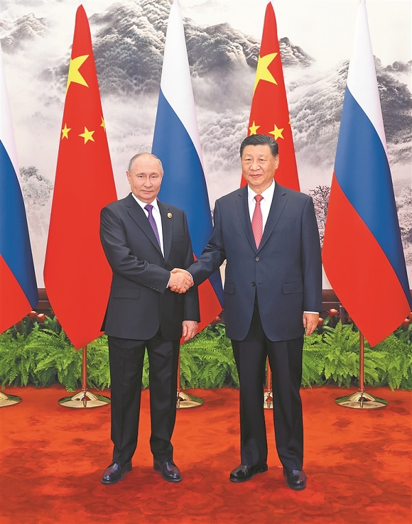 習近平強調,中俄關系75年發展歷史得出的最重要結論,就是兩個相鄰的大國之間,必須始終弘揚和平共處五項原則,相互尊重、平等互信、照顧彼此關切,真正為雙方的發展振興相互提供助力。這既是中俄兩國正確相處之道,也是21世紀大國關系應該努力的方向。中俄關系有著深厚的歷史積淀和堅實的民意基礎,雙方要密切戰略協作和互利合作,堅定地走自己的發展道路,堅定維護國際公平正義。