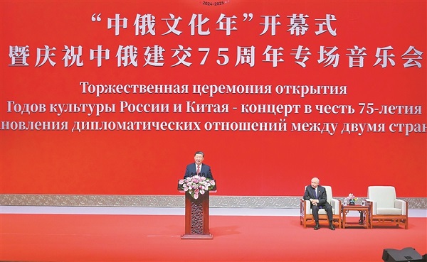 習(xí)近平指出,今年是中俄建交75周年。中俄關(guān)系四分之三個(gè)世紀(jì)的風(fēng)雨歷程表明,不斷鞏固和發(fā)展中俄永久睦鄰友好、全面戰(zhàn)略協(xié)作、互利合作共贏,符合兩國(guó)和兩國(guó)人民的根本利益,順應(yīng)國(guó)際社會(huì)期待和時(shí)代發(fā)展潮流,具有不可替代的重要意義。互辦主題年已經(jīng)成為中俄人文交流的優(yōu)良傳統(tǒng),也是兩國(guó)關(guān)系發(fā)展史上的特色和亮點(diǎn),受到兩國(guó)人民普遍歡迎。去年,我和普京總統(tǒng)商定2024-2025年舉辦“中俄文化年”。今天,雙方正式啟動(dòng)這一文化盛事。雙方將舉辦一系列豐富多彩的文化交流項(xiàng)目,進(jìn)一步釋放兩國(guó)文化合作潛力,共同開(kāi)創(chuàng)中俄文化交流的新未來(lái)。相信這將為中俄友好的世代傳承、為兩國(guó)人民的相知相親注入新動(dòng)力。