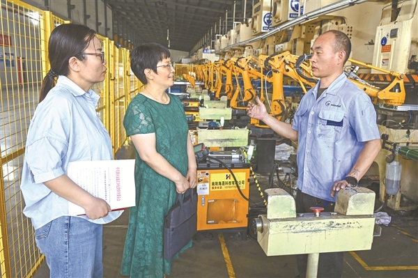 河南省漯河市源匯區(qū)紀委監(jiān)委針對案件查辦中發(fā)現(xiàn)的職能部門涉企檢查較為頻繁等問題,及時向相關(guān)職能部門下發(fā)紀檢監(jiān)察建議,推動相關(guān)問題全面整改。圖為近日,該區(qū)紀檢監(jiān)察干部到生產(chǎn)一線了解核實職能部門落實紀檢監(jiān)察建議情況。 尤亞輝 攝