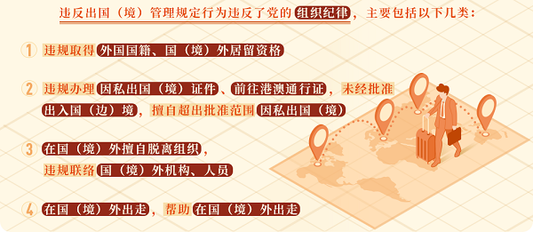 《中國(guó)共產(chǎn)黨紀(jì)律處分條例》對(duì)違反出國(guó)(境)管理規(guī)定行為列出負(fù)面清單,作出處分規(guī)定。