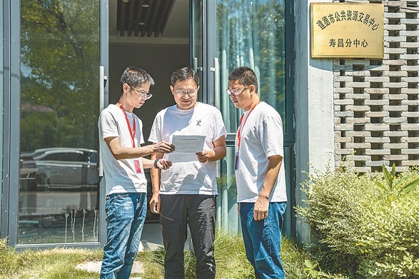 浙江省建德市紀委監委會同市審管辦、市審計局等職能部門,成立招投標領域專項整治問題處置工作組,建立案件移送、案件會商等機制,形成“案源發現、問題研判、案件辦理”全鏈條查辦閉環,綜合打擊招投標領域違規違法行為。圖為近日,該市紀檢監察干部實地走訪市公共資源交易中心壽昌分中心了解相關情況。邵明敏 攝