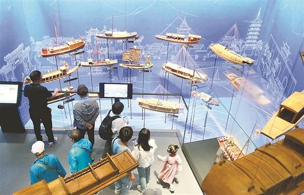圖為近日,觀眾在江蘇揚州中國大運河博物館參觀。新華社發(孟德龍 攝)