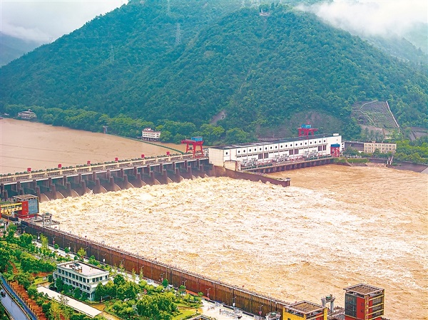 受富春江流域上游浙江金華衢州地區(qū)連續(xù)降雨影響,加之新安江大壩泄洪措施,富春江水庫的防汛形勢嚴峻。圖為6月27日,富春江大壩開閘泄洪,保持出入庫平衡。 圖片來源:視覺中國