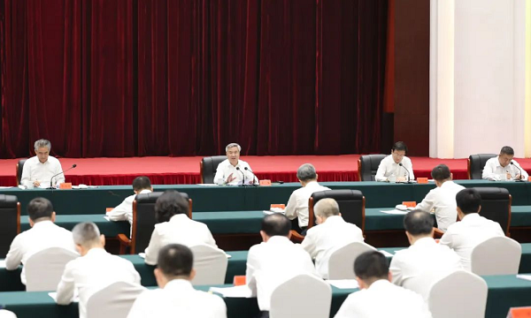 7月2日至5日,中共中央政治局常委、中央紀委書記李希到山西調研。這是7月4日,李希在太原主持召開座談會,了解紀檢監察機關深入推進全面從嚴治黨、正風肅紀反腐、開展黨紀學習教育等情況,并聽取意見建議。新華社記者 丁海濤 攝