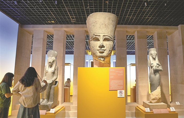 這是中國官方博物館首次與埃及政府合作,全面揭秘古埃及文明及其最新考古發現的大展,也是迄今為止全球最大規模、亞洲最高等級的古埃及文物出境展。展覽匯集了492組788件古埃及文明不同時期的珍貴文物。社交媒體上,不少觀眾發帖直呼“不虛此行”,并寫下各種版本的觀展攻略。