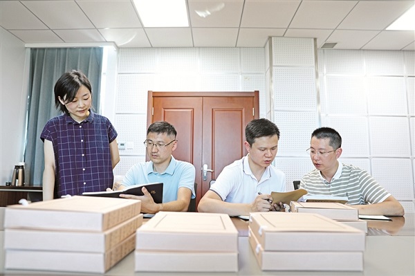 江蘇省金湖縣紀(jì)委監(jiān)委緊盯國有資產(chǎn)評估領(lǐng)域突出問題,強化類案分析研判,深入剖析問題背后深層次原因,推動行業(yè)主管部門建立健全機制,及時堵塞監(jiān)管漏洞,確保國有資產(chǎn)評估規(guī)范準(zhǔn)確。圖為近日,該縣紀(jì)檢監(jiān)察干部在研判相關(guān)案件。 邵傳雯 攝