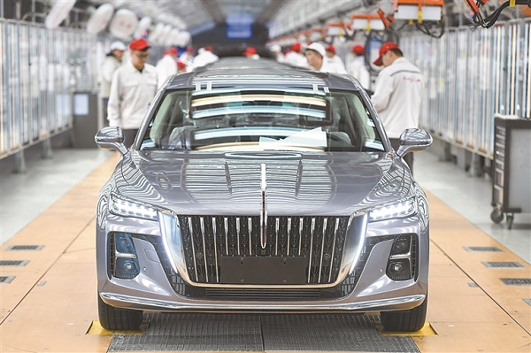 近年來,東北三省加大力度推進(jìn)傳統(tǒng)制造業(yè)數(shù)字化改造,依靠科技創(chuàng)新“第一動力”,聚焦“卡脖子”領(lǐng)域,讓傳統(tǒng)產(chǎn)業(yè)增“智”提“質(zhì)”,助力鍛造更強(qiáng)“國之重器”。圖為工人在一汽紅旗制造中心繁榮廠區(qū)總裝車間檢查車輛。 新華社記者 張楠 攝