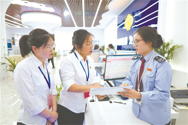 河南省洛陽市孟津區紀委監委聯合稅務部門通過“智慧稅務”、大數據比對等方式,篩查黨員干部是否存在兼職違規取酬、掛證取酬等問題線索。圖為近日,該區紀檢監察干部到區稅務局了解相關情況。呂曉鵬 攝