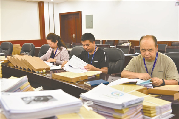 云南省石林彝族自治縣紀委監委與稅務、工商、人社等部門協同聯動,持續整治違規兼職問題。圖為該縣紀檢監察干部分析比對職能部門提供的工資、養老社保、工商和民政登記信息等數據。李卿鈺 攝