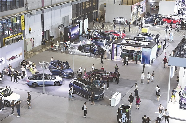 商務部等7部門日前發布《關于進一步做好汽車以舊換新工作的通知》,汽車以舊換新補貼再度加碼,搭配新一期新能源下鄉活動展開、新能源汽車購置稅減免等配套優惠等政策,下半年汽車銷量有望得到進一步提振。圖為近日,中國智能汽車及自動駕駛博覽會上,消費者正在選購新能源汽車。圖片來源:視覺中國