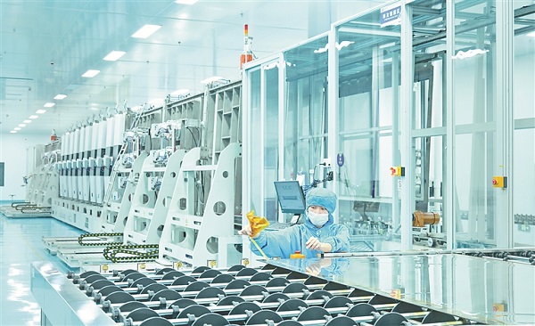 日前,江西省安遠縣產城新區的一家光電科技有限公司智能化生產車間內,技術工人在調試新型生產設備。圖片來源:視覺中國