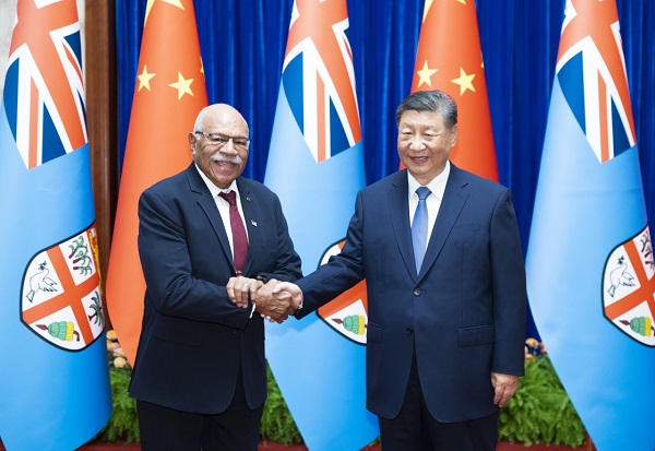 8月20日下午,國家主席習近平在北京人民大會堂會見來華正式訪問的斐濟總理蘭布卡。新華社記者 黃敬文 攝