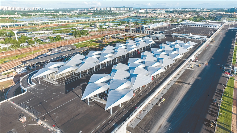 海南省海口市通過“監(jiān)督一張網(wǎng)”平臺發(fā)起辦件,推動解決封關(guān)運作項目審批流程復(fù)雜問題。圖為海口新海港和南港“二線口岸”(貨運)集中查驗場所項目施工現(xiàn)場。楊鶴 攝