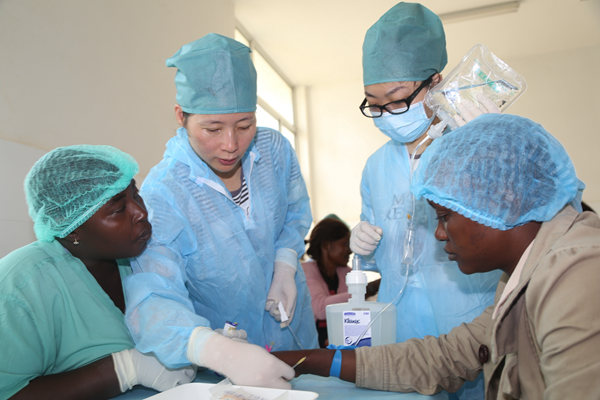 圖為在塞拉利昂首都弗里敦,中國人民解放軍援助西非抗擊埃博拉疫情醫(yī)療隊為中塞友好醫(yī)院開展輸液培訓(xùn)活動。 新華社發(fā)(戴欣 攝)