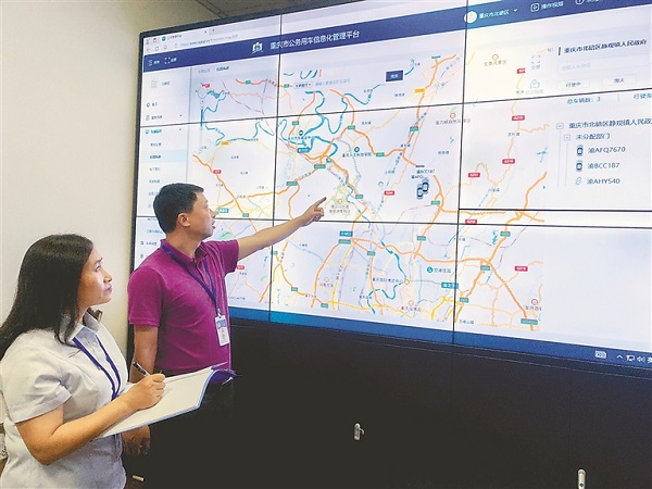 重慶市北碚區紀委監委加強節前公務用車管理監督,把大數據比對與線下實地核查相結合,嚴查公車私用、私車公養等問題。圖為近日,該區紀檢監察干部通過公務用車信息化管理平臺核查公務用車情況。朱喆 攝