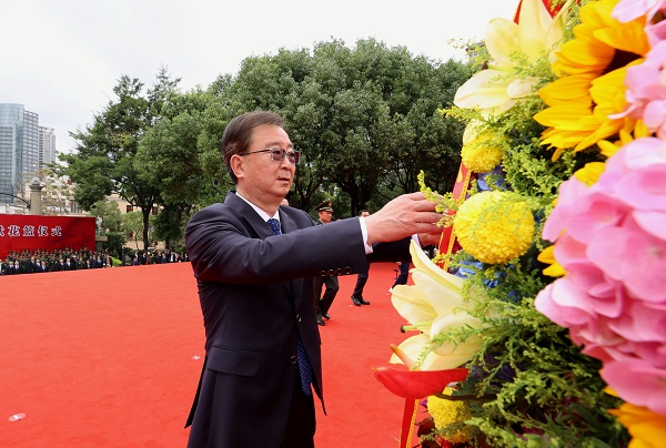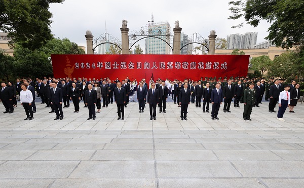 9月30日上午,省委、省政府和昆明市委、市政府在昆明抗戰勝利紀念堂隆重舉行2024年烈士紀念日向人民英雄敬獻花籃儀式。