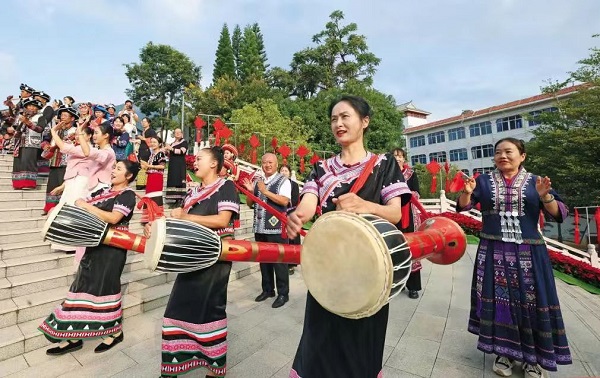 2024年9月25日,各族群眾身著盛裝相聚普洱民族團結園廣場,載歌載舞,迎接習近平總書記的重要回信,共慶這一無比幸福的歷史性時刻。云南日報攝影部供圖