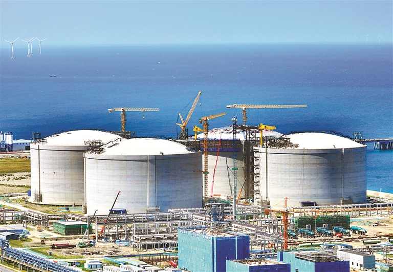 圖為近日,江蘇省如東縣洋口港陽光島,該省液化天然氣儲運調峰工程建設新貌。 圖片來源:視覺中國
