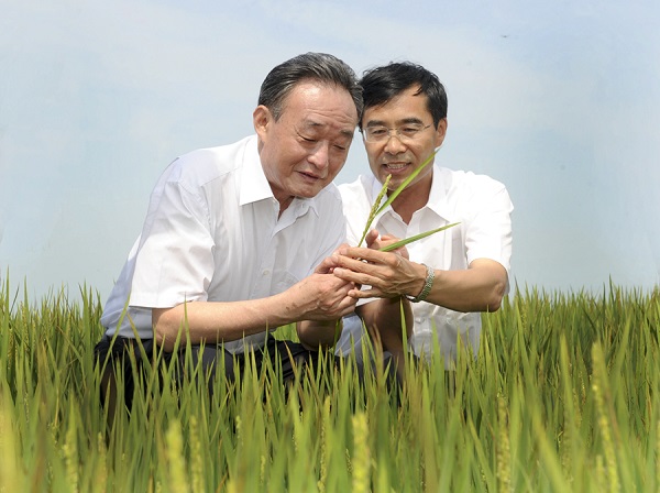 2012年7月19日,吳邦國(guó)同志在黑龍江農(nóng)墾建三江管理局二道河農(nóng)場(chǎng)萬(wàn)畝大地號(hào)察看水稻長(zhǎng)勢(shì)。新華社記者 謝環(huán)馳 攝