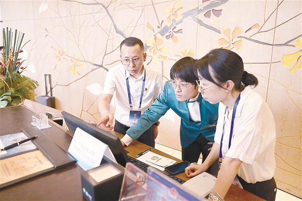 浙江省杭州市富陽區紀檢監察干部前往轄區某酒店了解情況,查找“吃喝讓下屬買單”等問題線索。 賈昊東 攝