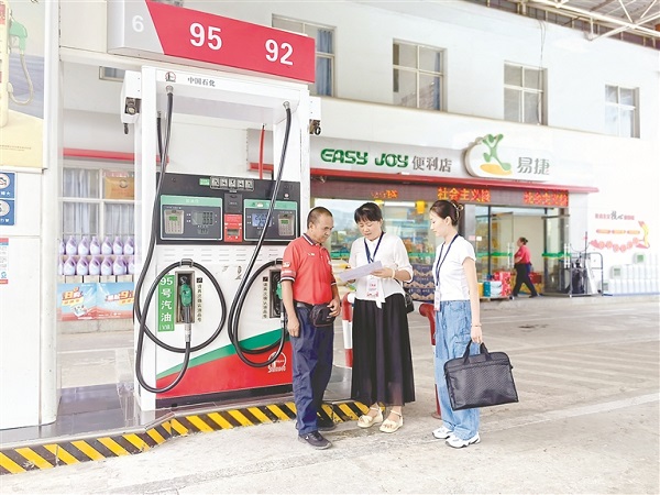 云南省紅河縣紀委監委干部走訪某加油站,查擺違規占用下屬單位車輛、轉嫁加油費用等問題線索。楊紫童 攝