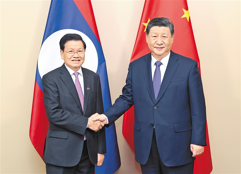 習近平指出,去年10月,我們就深化中老全面戰略合作達成重要共識。一年來,兩黨兩國各部門各地方積極落實,推動互聯互通、經貿投資、人文交流等領域合作取得豐碩成果。作為社會主義同志加兄弟,中老關系在中國周邊外交中具有特殊重要位置,始終走在構建命運共同體的前列。無論國際形勢如何變化,中國永遠是老撾可信賴的朋友和伙伴。中國正在以高質量發展全面推進中國式現代化,老撾也處在國家發展振興的新階段。中方愿同老方鞏固戰略互信,深化務實合作,推動中老命運共同體建設持續走深走實。