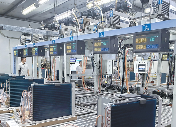 “端到端燈塔工廠”海爾膠州空調互聯工廠外機總裝車間。沈東方 攝